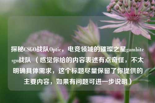 本文聚焦于CSGO战队Optic,它堪称电竞领域的璀璨之星,Optic战队在CSGO赛事中展现出非凡实力与独特魅力,其精湛的战术配合、出色的团队协作以及选手们卓越的个人能力,使其在众多比赛中脱颖而出,还提及了gambitcsgo战队,二者或许在电竞舞台上有着不同的表现风格与竞争轨迹,但都为CSGO电竞领域增添了别样光彩,吸引着无数电竞爱好者的目光,它们的故事和发展历程值得深入探究,在电竞世界中留下了浓墨重彩的一笔。